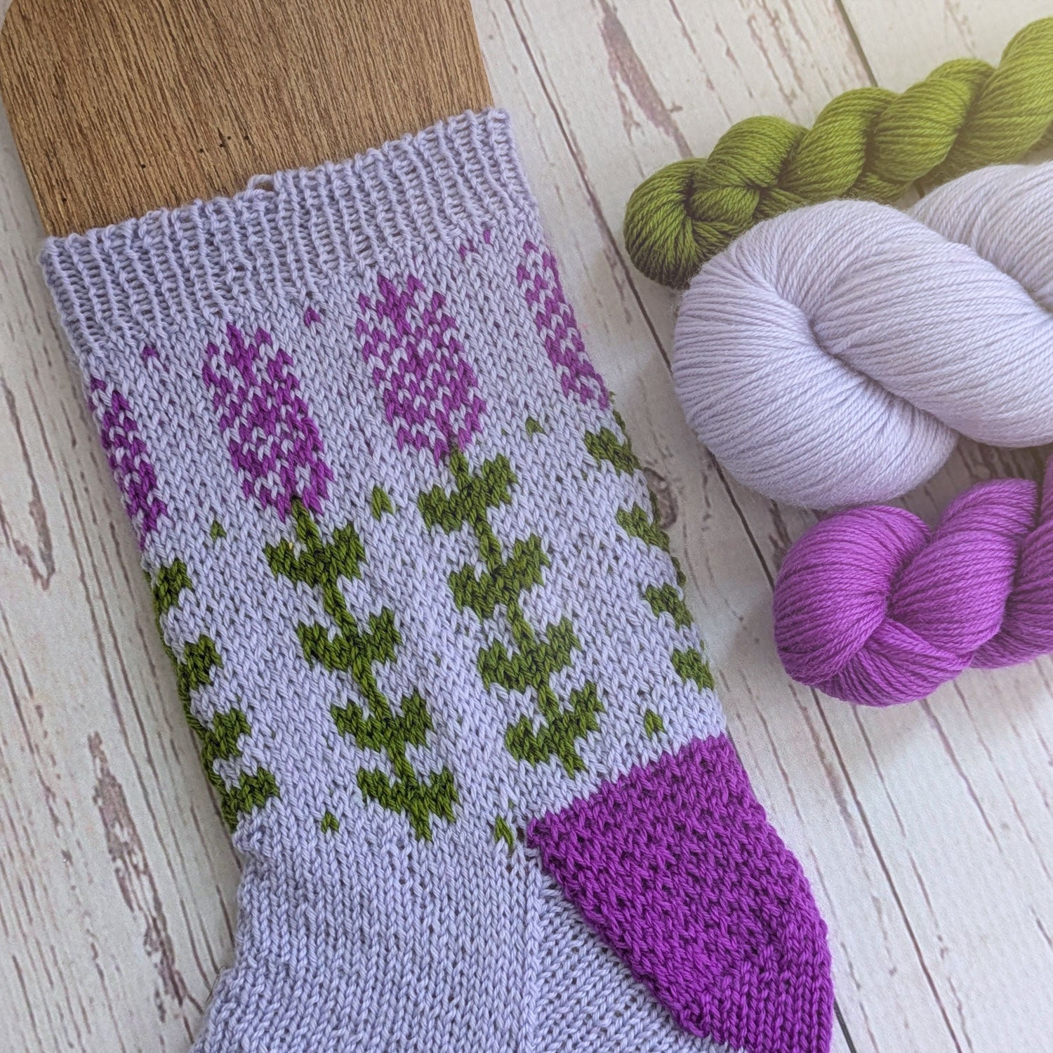 An adorable mini skein collection made for knitting up the cute Blooming Lavender Sock pattern by Charlotte Stone. You'll receive: