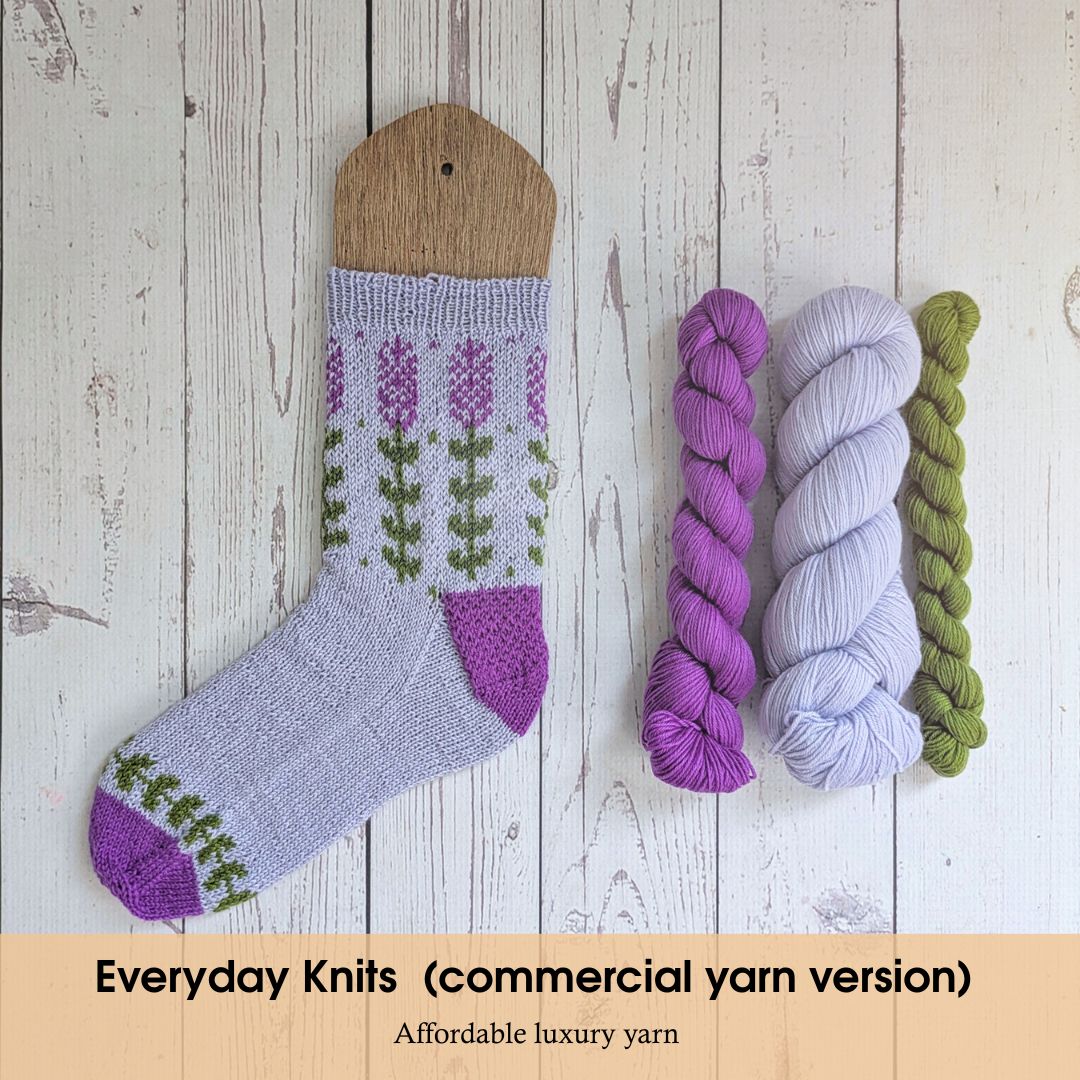 Each kit contains enough to work up a lovely pair of blooming socks!