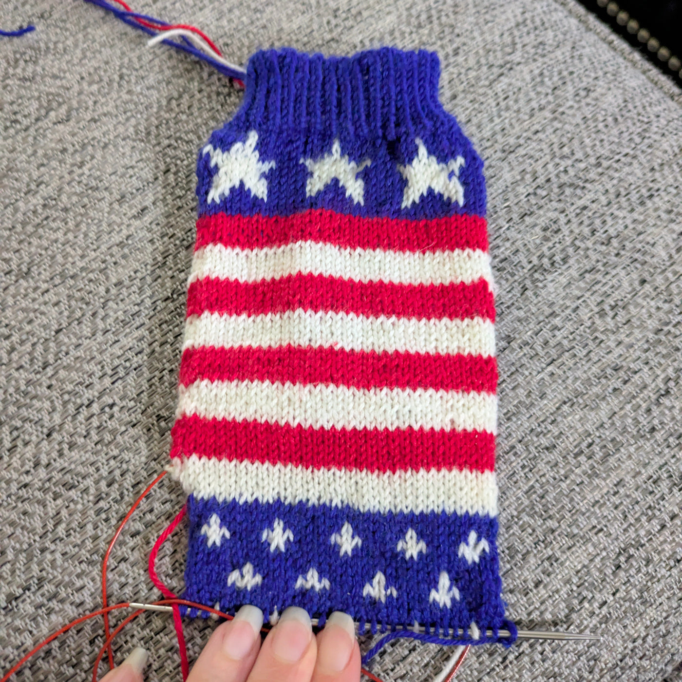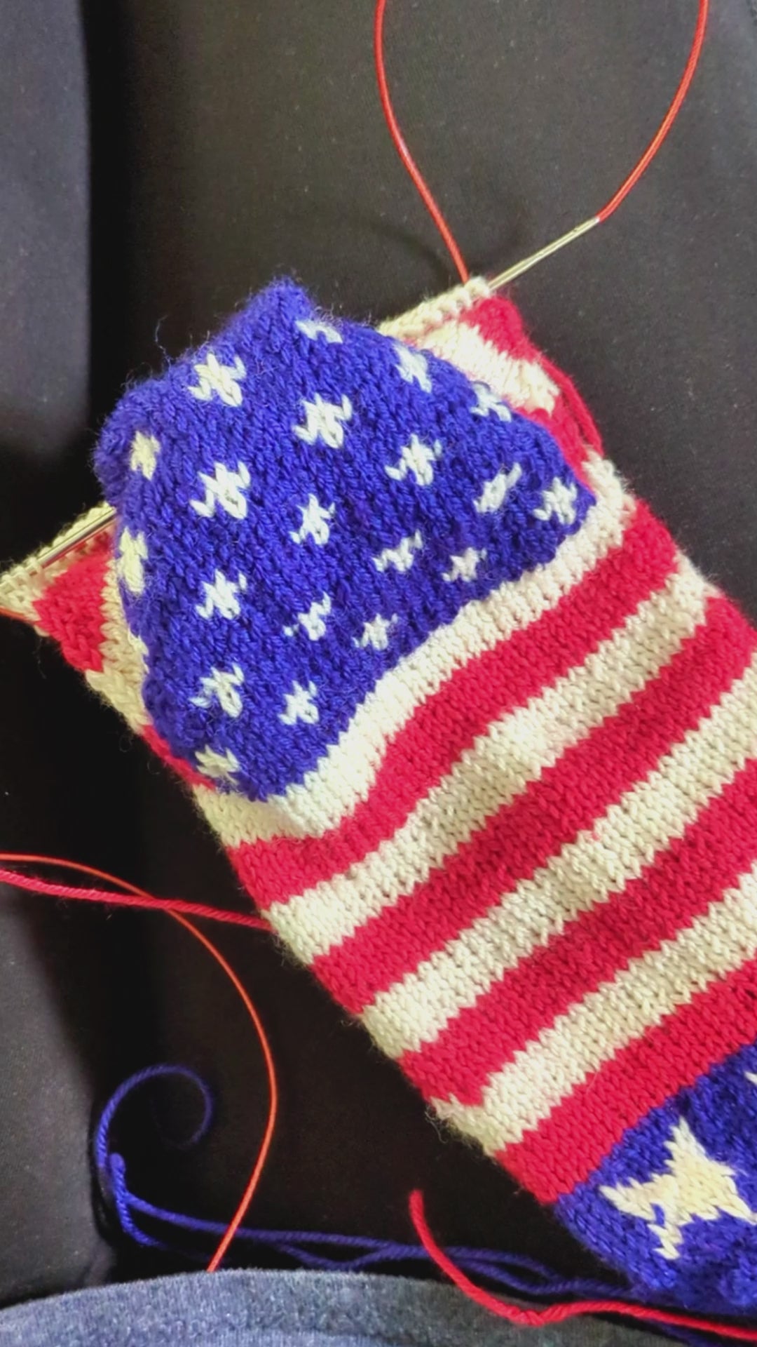 Stars and Socks Forever is a festive stranded colorwork sock knitting pattern featuring red, white, and blue yarn—ideal for intermediate knitters who love bold designs, holiday knits, and cozy, custom-fit socks.